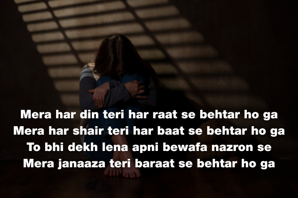 Best Bewafa Shayari expresses the pain of betrayal and heartbreak when love changes its colors These heartfelt lines are for those who have experienced loneliness tears and unfulfilled promises in their relationships Every verse of Bewafa Shayari holds the feeling of separation and the silent cry of a broken heart It reflects the emotions that words often fail to express the sorrow of lost love and the ache of memories that never fade Through this poetry people find a way to release their pain and connect with others who have felt the same Each line speaks of deep emotions shattered dreams and the reality of love’s cruelty.
